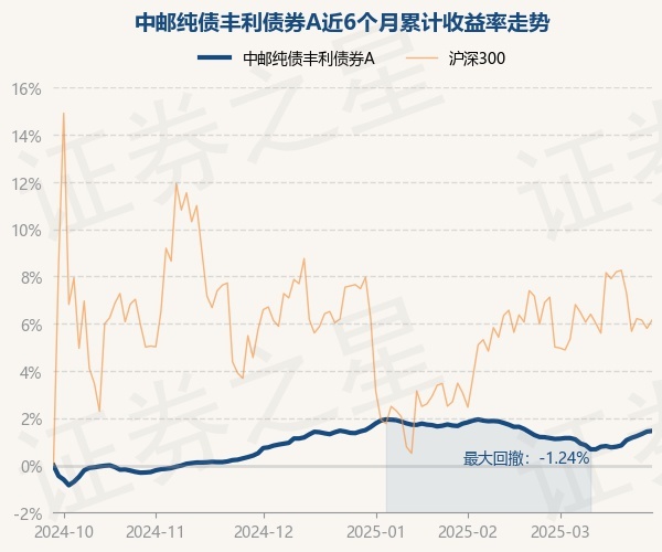 本站消息,3月27日,中邮纯债丰利债券A最新单位净值为1.107元,累计净值为1.173元,较前一交易日上涨0.03%。历史数据显示该基金近1个月上涨0.3%,近3个月上涨0.02%,近6个月上涨1.46%,近1年上涨3.37%。该基金近6个月的累计收益率走势如下图: